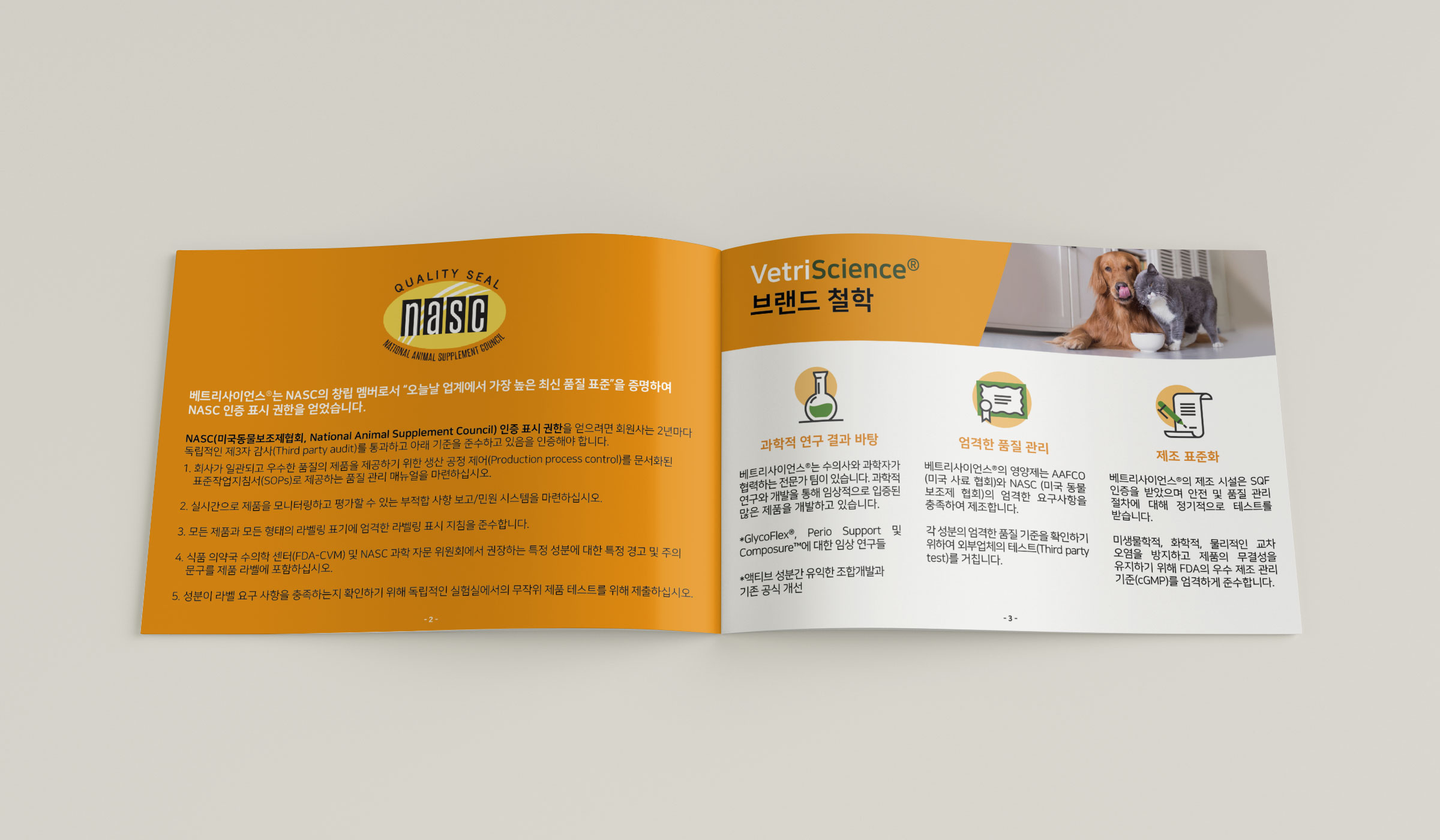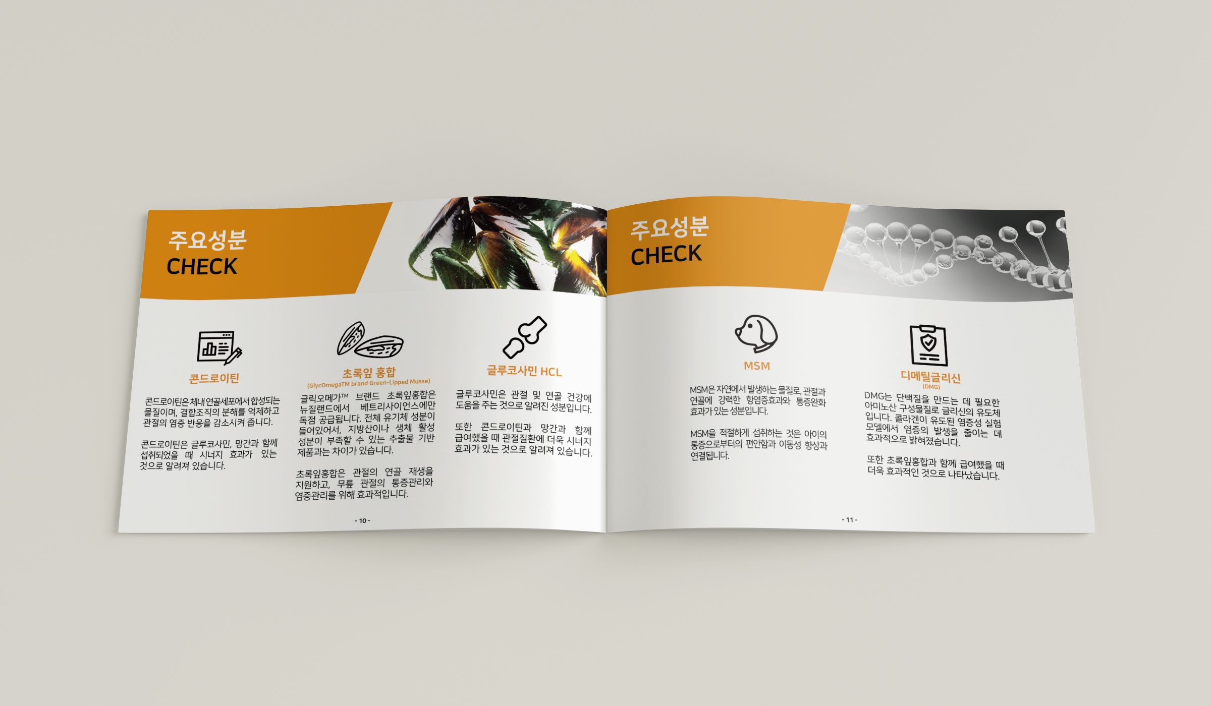 ADVERTISING [브로셔] 제품 소개 머틀디자인 반려동물 영양제 제품 소개 브로셔 반려동물 영양제 제품 소개 브로셔 시안입니다. 클라이언트께서 PPT 파일로 각 페이지별로 내용을 잘 분할하여 기획안을 만들어주셔서 빠르게 작업을 진행할 수 있었어요. 내용에 알맞은 이미지와 아이콘, 그리고 그래프, 표 등을 통일성 있고, 깔끔하게 레이아웃을 짜서 브로셔 제작을 마무리해 드렸습니다😊 공유하기 게시글 관리 MYRTLE DESIGN PORTFOLIO 저작자표시 비영리 변경금지 (새창열림)