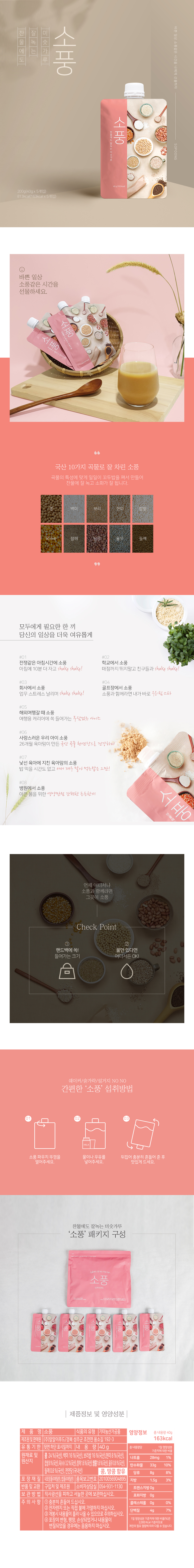WEB [상세페이지] 포켓밀 미숫가루 머틀디자인 식사대용 '미숫가루' 찬물에도 잘 녹는 '미숫가루' 상세페이지 시안입니다. 제품과 관련된 이미지 외의 불필요한 오브젝트 사용을 최소화하고, 제품 컬러를 주조색으로 사용하여 클라이언트의 의도를 반영하여 감성적이고 부드러운 느낌을 살려 디자인하였습니다. 공유하기 게시글 관리 MYRTLE DESIGN PORTFOLIO 저작자표시 비영리 변경금지 (새창열림)