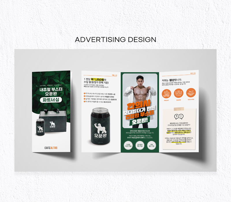 ADVERTISING [리플릿] 제품 홍보물 머틀디자인 협력제안 홍보물 신제품 출시를 맞이해서 3단 접지 리플렛을 제작해드렸어요. 페이지별로 내용을 분할하고 구조를 짜서 이미지를 배치하고 디테일을 잡는 과정을 통해 나의 제품을 효과적으로 설명하고 알리는데 효과적인 리플렛 제작! 머틀디자인에 맡겨주세요^^~ 공유하기 게시글 관리 MYRTLE DESIGN PORTFOLIO 저작자표시 비영리 변경금지 (새창열림)